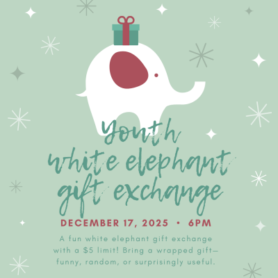 We’re wrapping up our last Sacred Threads of the year with a fun $5 (or something you already have!) White Elephant Gift Exchange. Bring a wrapped gift—funny, practical, or just something you’re ready to pass along!